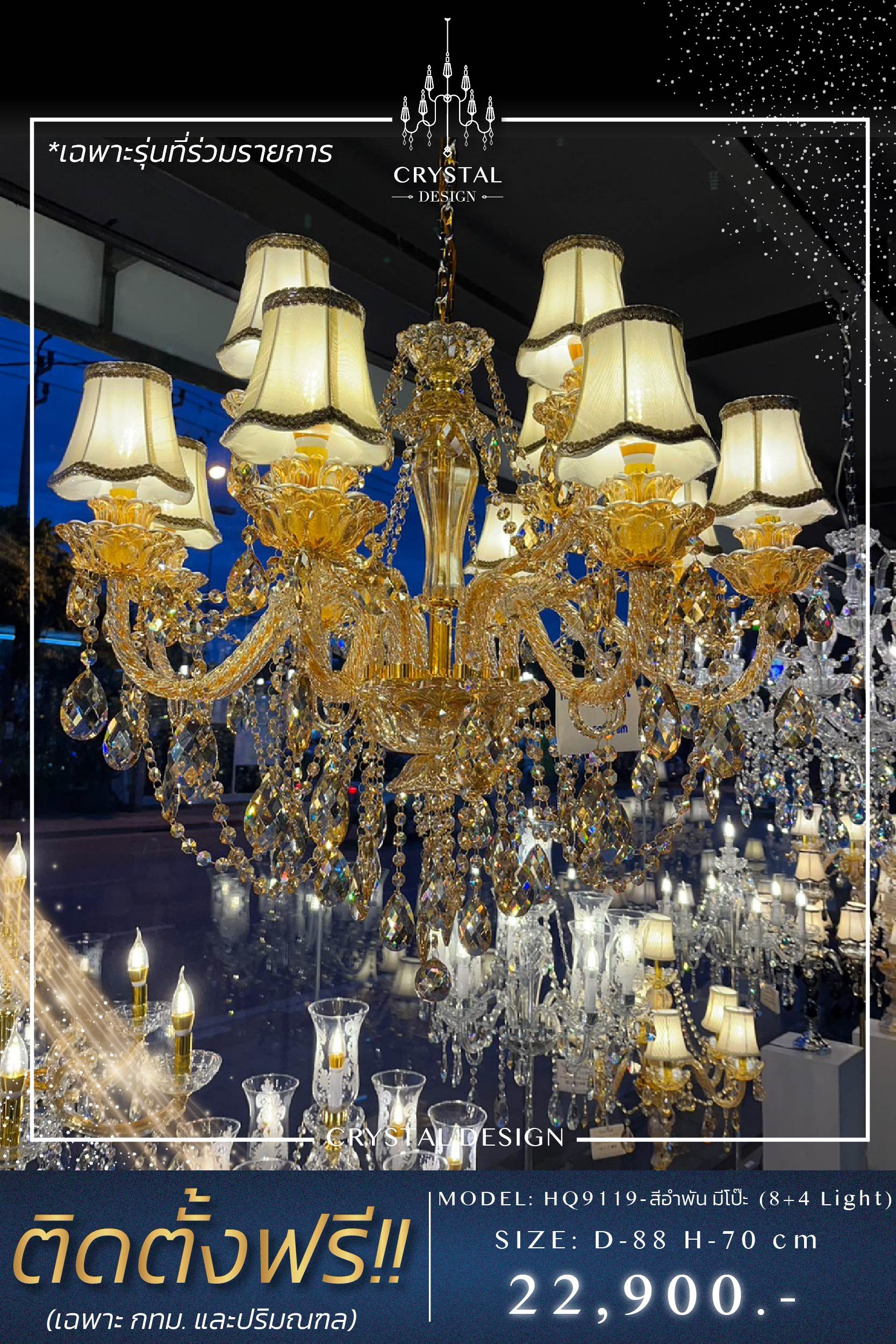 โคมไฟเพดาน แชนเดอเลียร์ HQ9119-สีอำพัน มีโป๊ะ