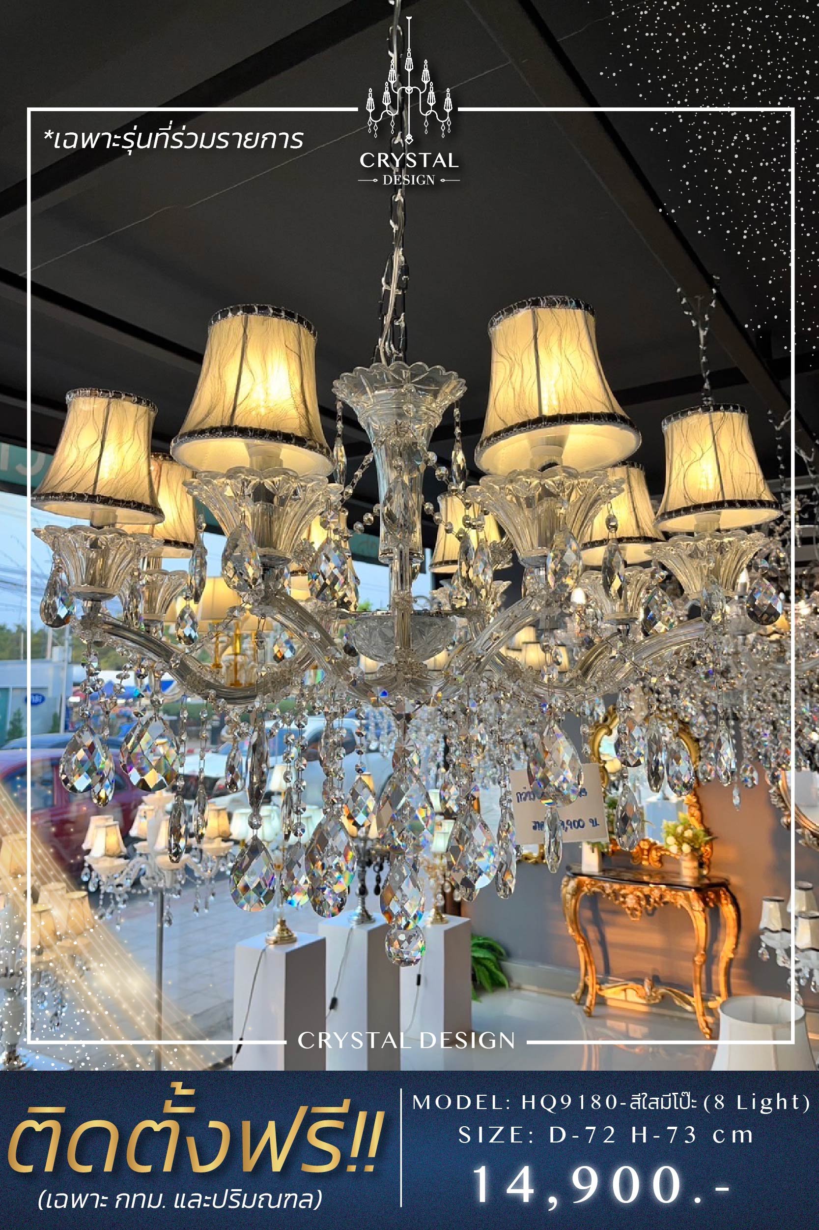 โคมไฟเพดาน แชนเดอเลียร์ รุ่น HQ9180 - มีโป๊ะ (8 Light)